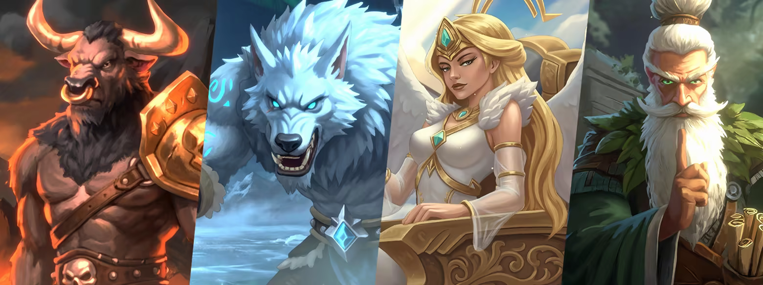 Twelve heroes, each bending the rules of the Gauntlet in a different way. Pick one, start with a basic deck, and fight through rounds of increasingly dangerous opponents.