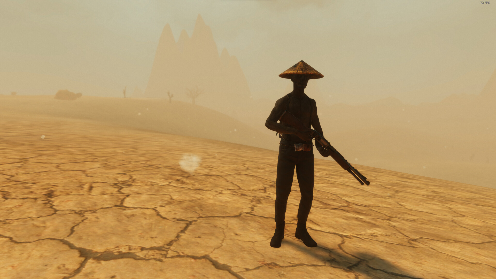 The world map is 100 sq km of true wasteland. The omnipresent heat turned the world into an endless plain devoid of vegetation. There are settlements and camps of survivors. You can meet some animals there. But be prepared for any advanture there. That heat is killing.