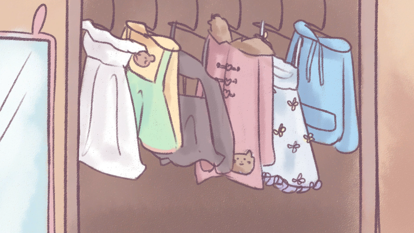 memories is a sapphic visual novel dress-up game where clothes are linked to painful memories of a failed relationship. Merging the genres of dress-up game and visual novel, memories highlights sadness and nostalgia in an immersive, pastel experience.
