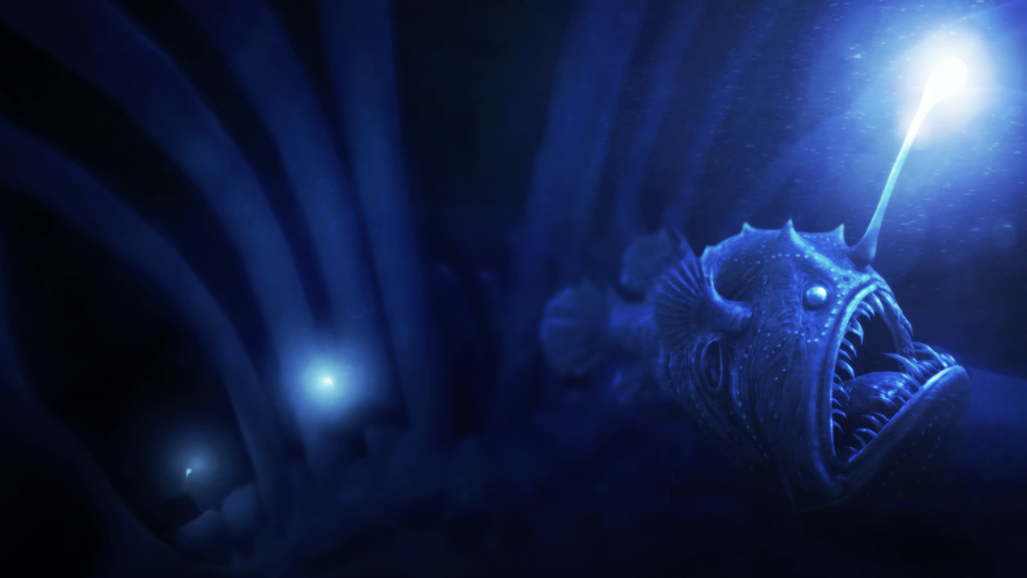 Venture into the deepest oceans to discover the iridescent abyss. Explore the space around you and discover numerous bioluminescent species as the light slowly builds around them, culminating in a fantastic living light show.