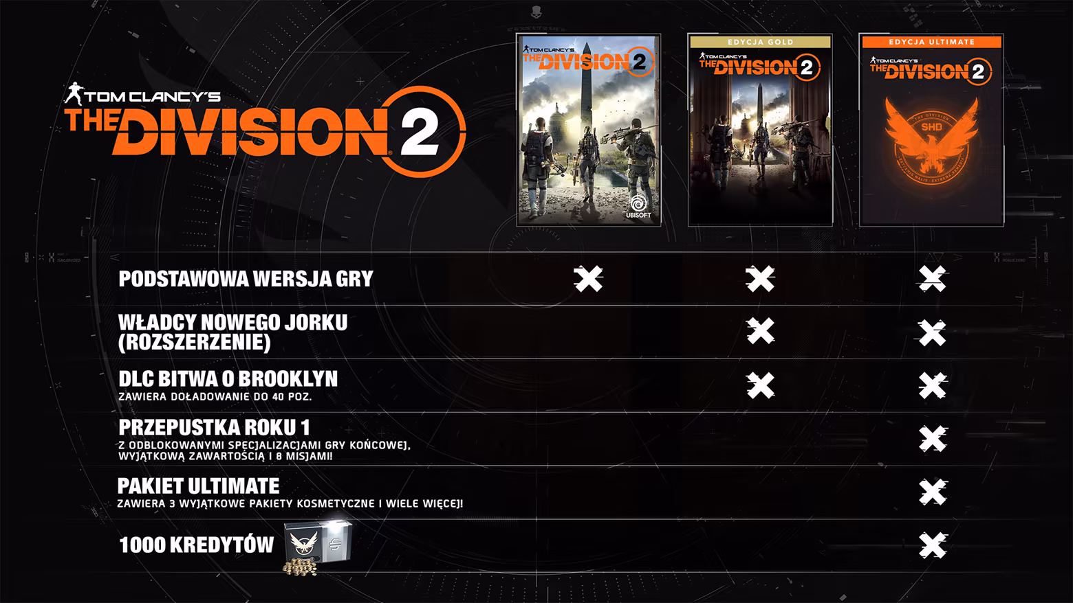 TOM CLANCY’S THE DIVISION 2 EDYCJA GOLD ZAWIERA: