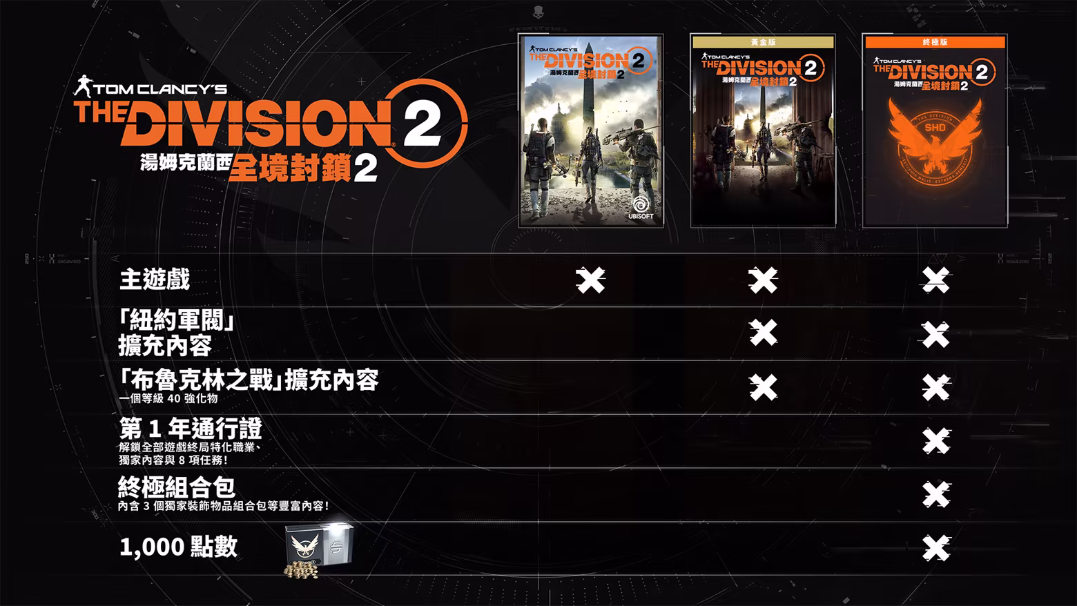 《湯姆克蘭西:全境封鎖 2》黃金版內含: