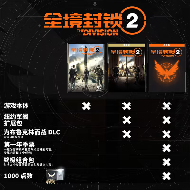 汤姆·克兰西《全境封锁 2》终极版包含: