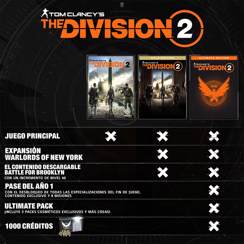 TOM CLANCY'S THE DIVISION 2 GOLD EDITION INCLUYE: