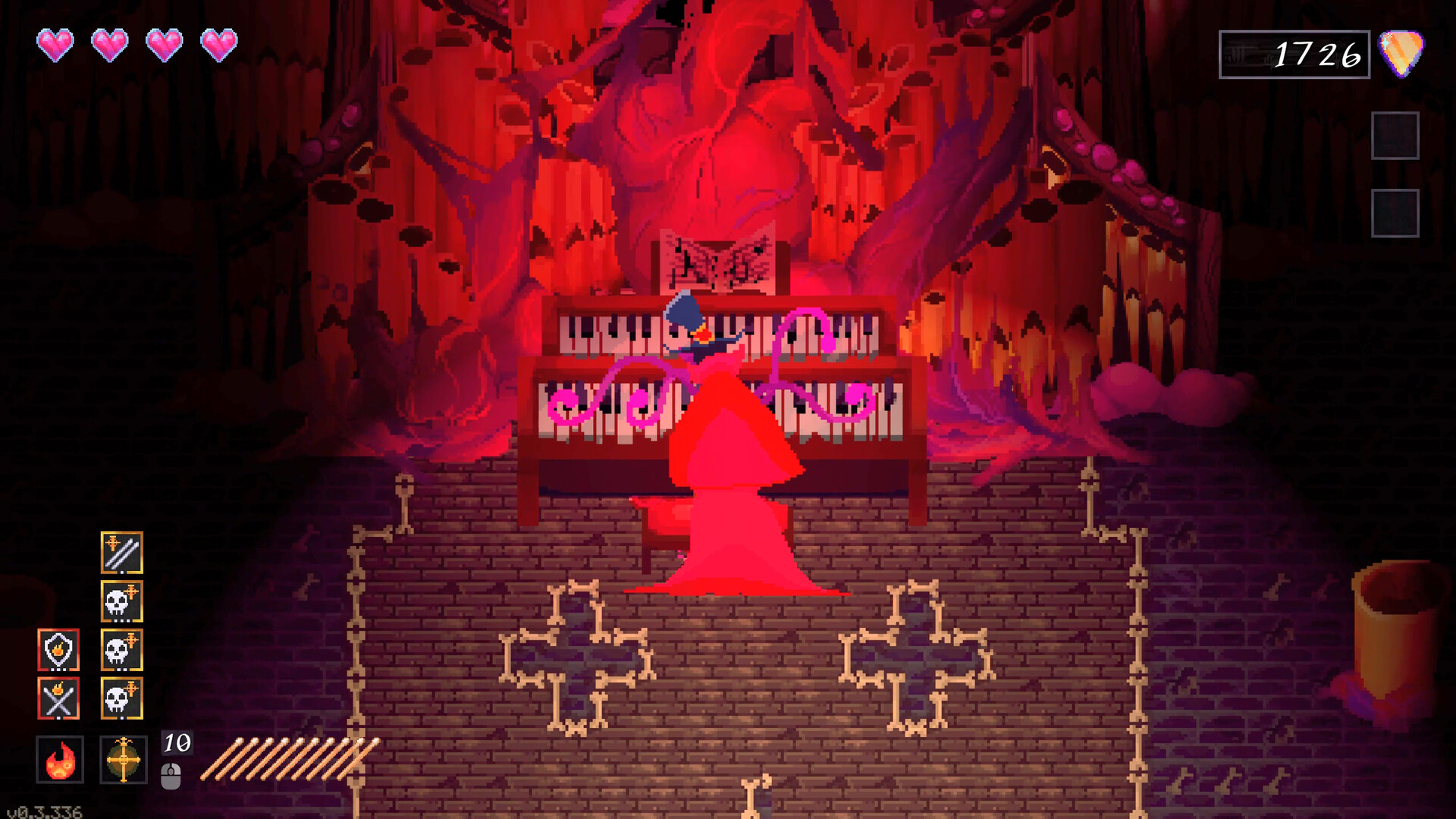 Your only companion in this hellscape is BingBong, a seemingly friendly voidling, who helps you along your quest by advancing your drumming skills… for a price. His booth is open to trade in guitar picks for something a bit more useful on a run.