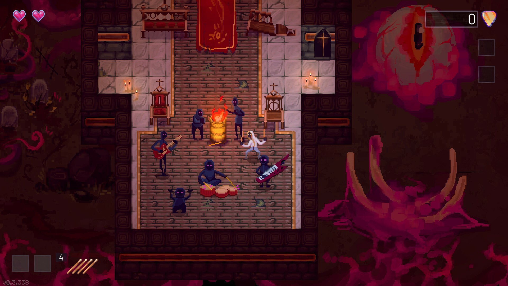 - Navigate the dilapidated church overrun with unimaginable horrors as you level-up your drumming skills and build your repertoire of metal music that grants you mysterious powers.