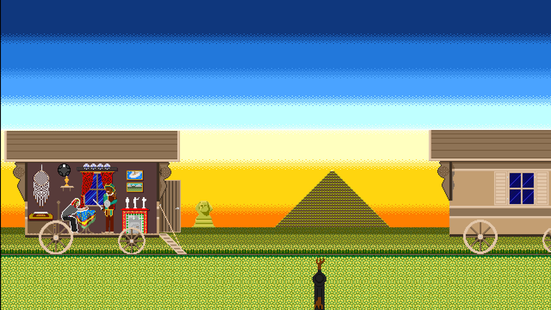 • Replicating retro - 8-bit color depth (256 colors), upscaled low resolution (640x360) pixel art to modern resolutions, lo-fi sound and music, as an homage to the 16-bit era.