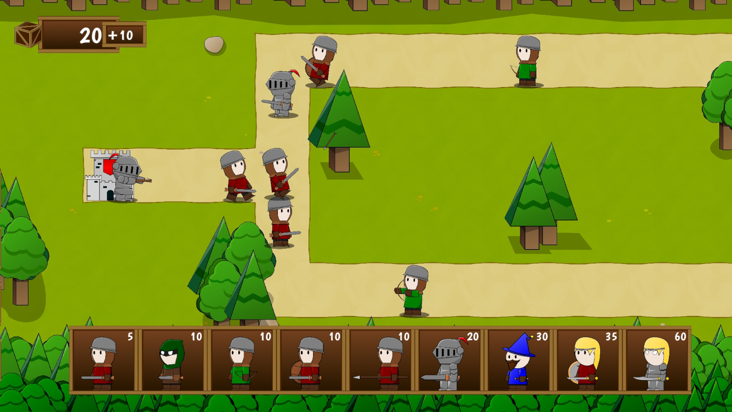 Your troops will move on their own initiative to engage the enemy at their castle, but the entire battlefield is full of resources! Move troops around with the UI or keyboard to capture tiles for more resources! These resources can in turn be spent for a greater quality or quantity of troops!
