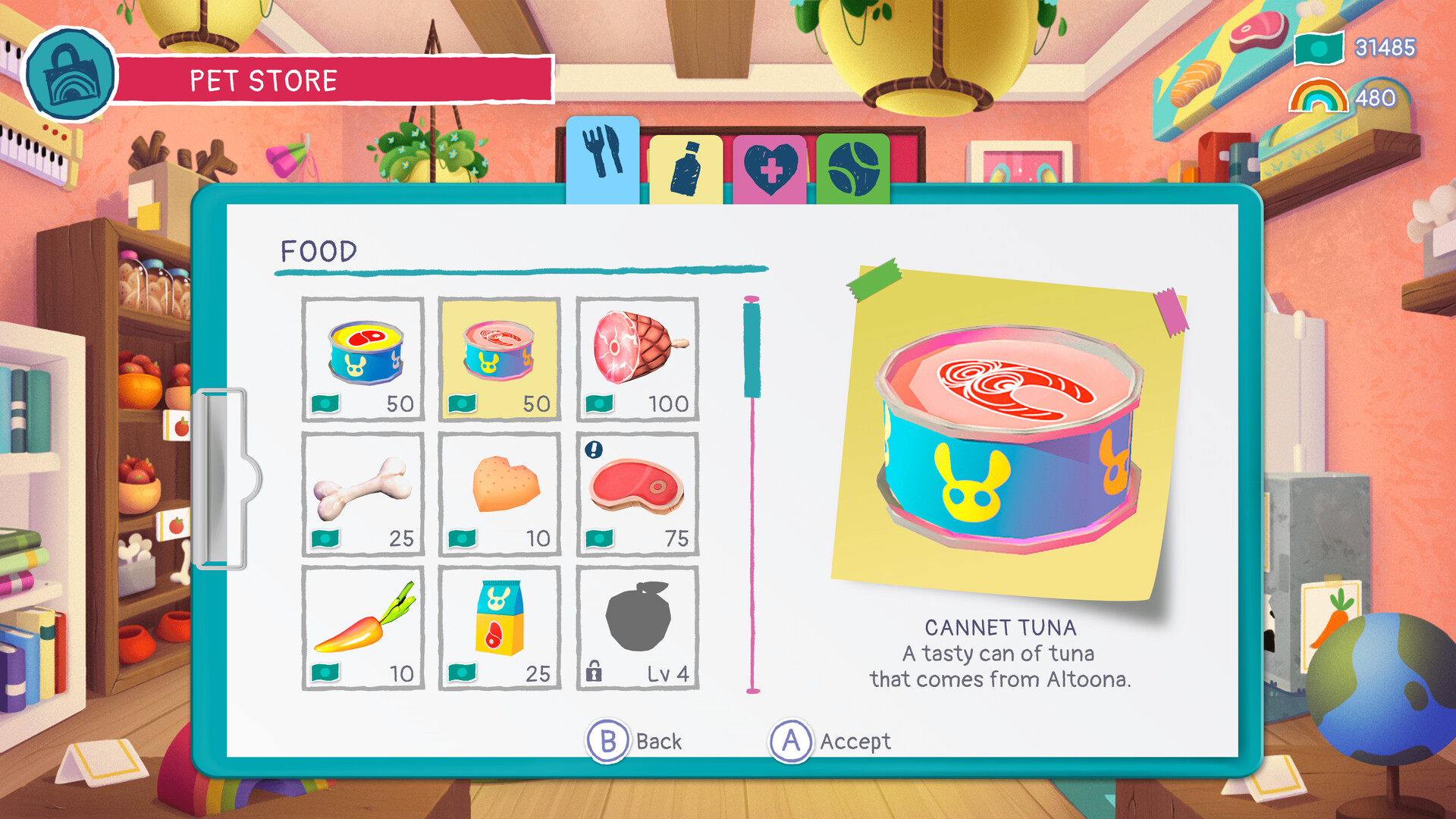 • Happiness: Increase your pet’s affection by playing or petting them.