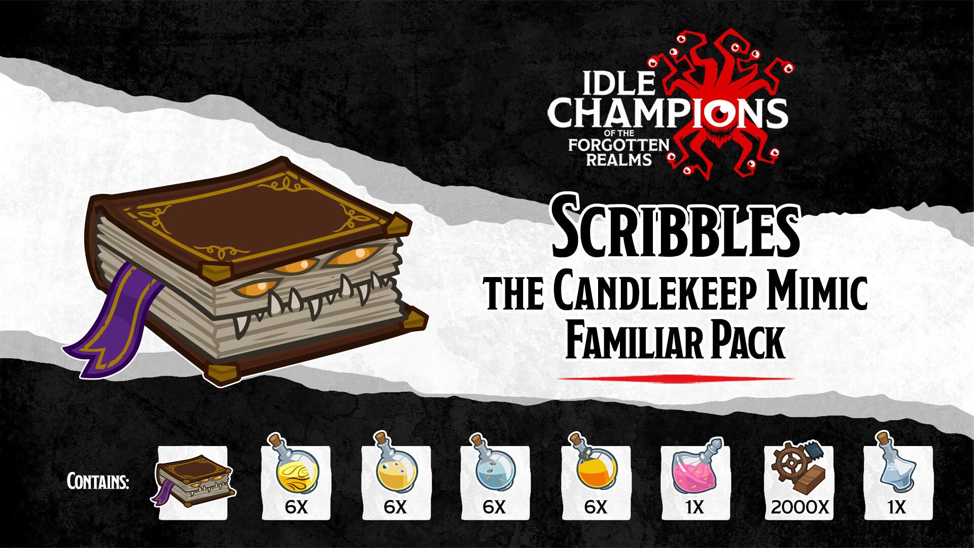 Notice: Idle Champions - Scribbles the Candlekeep Mimic Familiar Pack is no longer available on the Steam store.