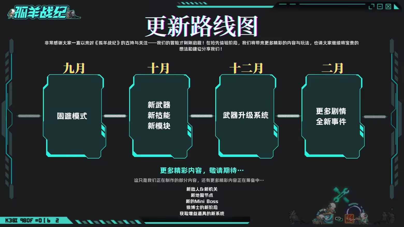 “《孤羊战纪》计划在抢先体验发布后约一年内正式推出1.0版本,但随着开发内容的调整,日期可能会有所变动。”