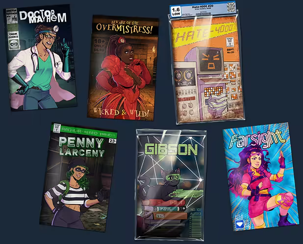 It's a world of heroes and villains, masks and capes, and Penny Larceny -- grifter, con artist, catburglar -- is barely scraping by. Life's hard for a young mask trying to make it big, but now she's gained access to Crimr, the gig-economy service for henchpersons looking to help supervillains with their evil, evil schemes! Guide Penny through her new career, pull off daring heists, and unravel the conspiracies which allow the rich and powerful to maintain their profitable status quo.