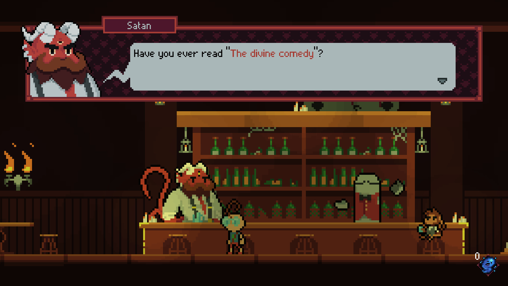 Satan is in charge of Sinner's Tavern, a place of gathering and rest. Talk and interact with him and all the lost sinners you encounter on your journey through hell.
