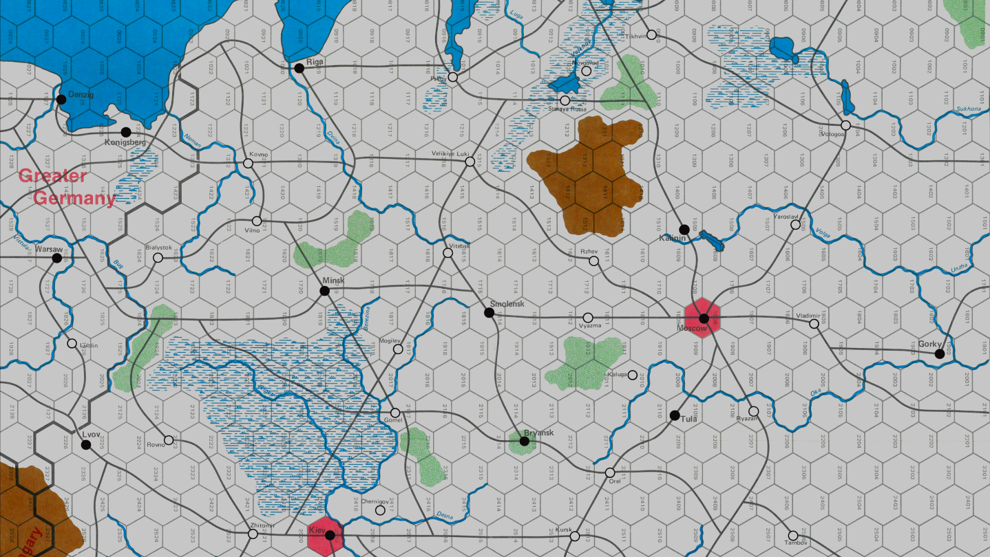 This game is a PC conversion of the board war game 1941, which is a hex-strategy turn-based game for two players set in the World War II campaign of the Axis invasion of the Soviet Union and the Soviet counter-attack.