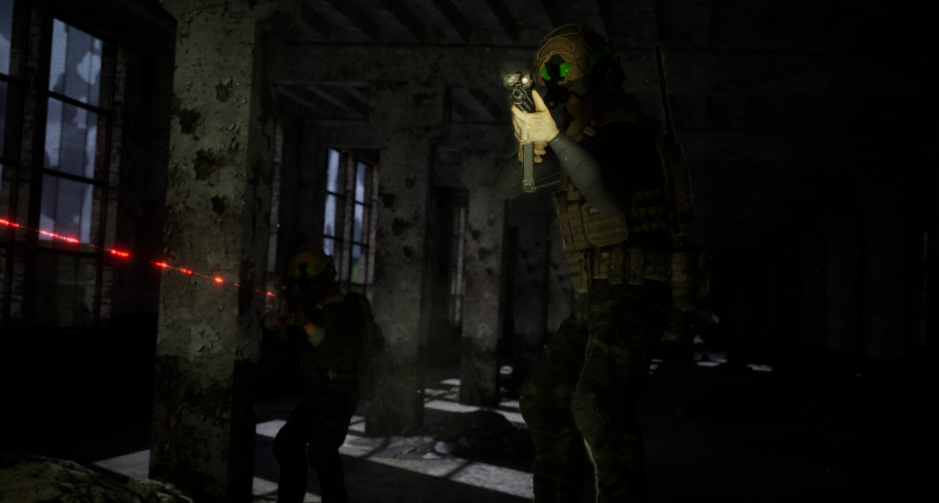 Immersive Health and Injury System: There's no regenerating of health. heavy Injuries must be treated by a Medic, light injuries could be treated by using a bandage or tourniquet, and severe injuries result in death. Different injuries require specific treatments, time, and tools.