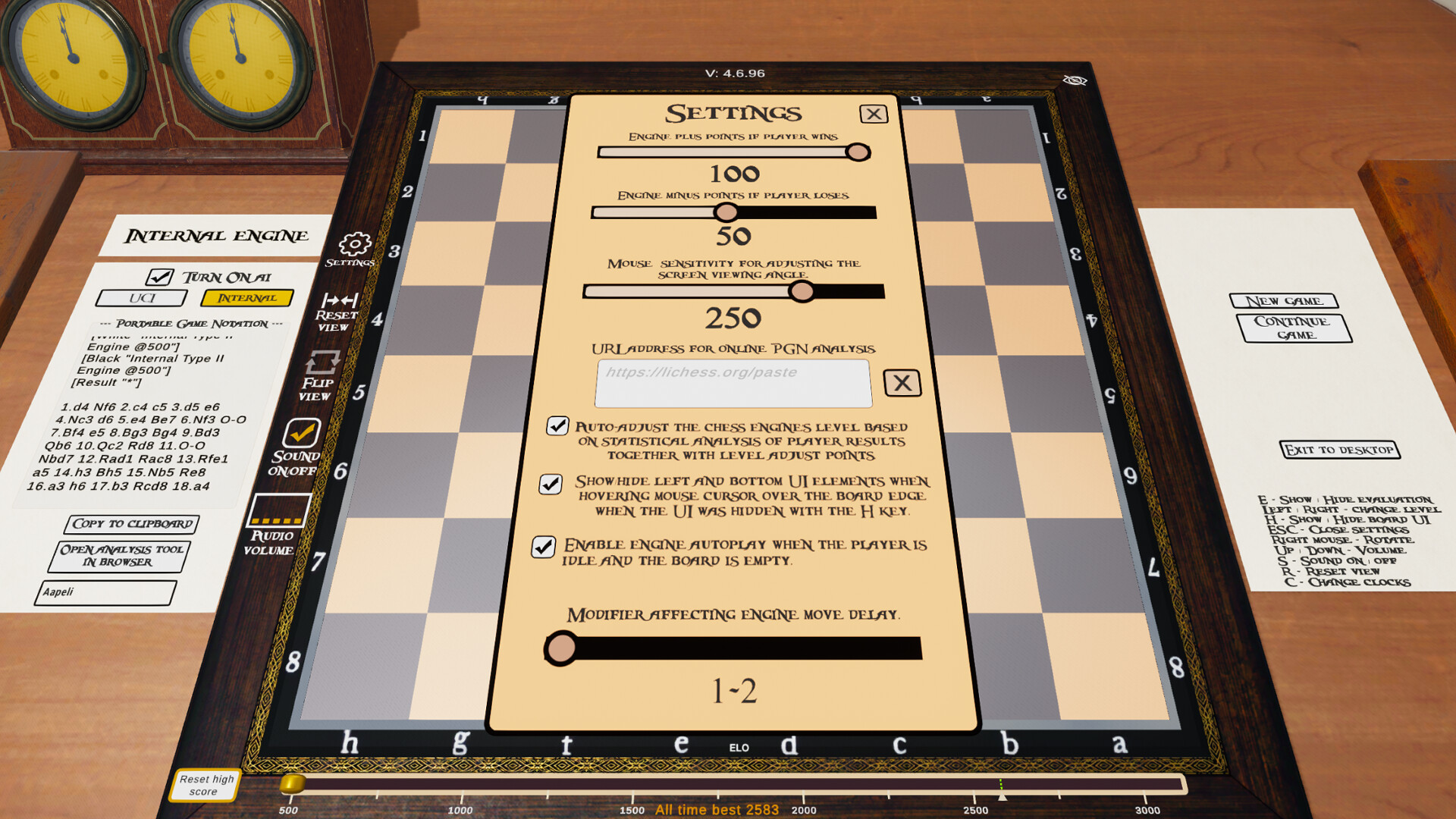 • Adaptive AI Strength – Both the built-in and UCI chess engines can automatically adjust their strength based on your wins and losses, ensuring a balanced challenge.