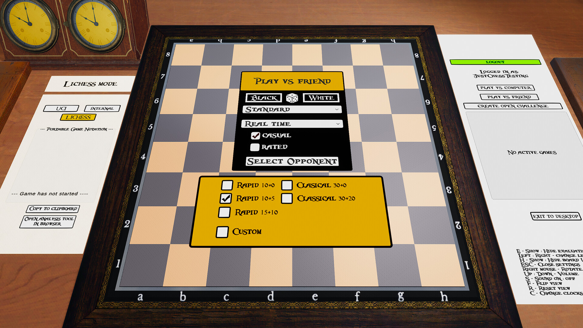 • 2D and 3D Chess Clocks – Switch between practical 2D and immersive 3D clock views using the C key. 3D clocks show remaining time as a circular diagram.