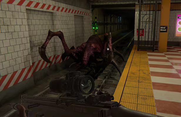The game features the use of guns and violent interactions with various non-human creatures, including insects, creatures resembling dogs, and spider-like beings, which may result in the depiction of blood and injury.