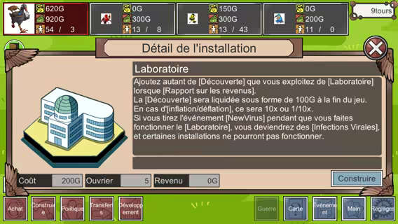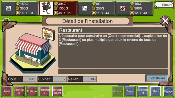 Ce jeu consiste à gagner de l'argent et à augmenter les actifs en construisant des installations et en faisant travailler les gens.