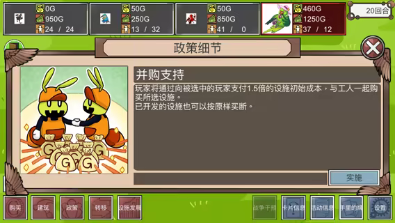 一个有坏性格的回合制卡牌棋盘游戏。 无论你是赢还是输,都会有华-哈-哈和兴奋。 以大富大贵为目标! 人们如果劳动就会产生钱,但如果不劳动就会花钱。 在这个游戏中,重要的是尽快建立设施,并将人们留在身边。 你可以继续默默地建造设施,或者使用政策牌来阻碍其他玩家。 游戏结束时,拥有最多资产的玩家获胜。 在多人游戏中与朋友和家人一起兴奋起来。