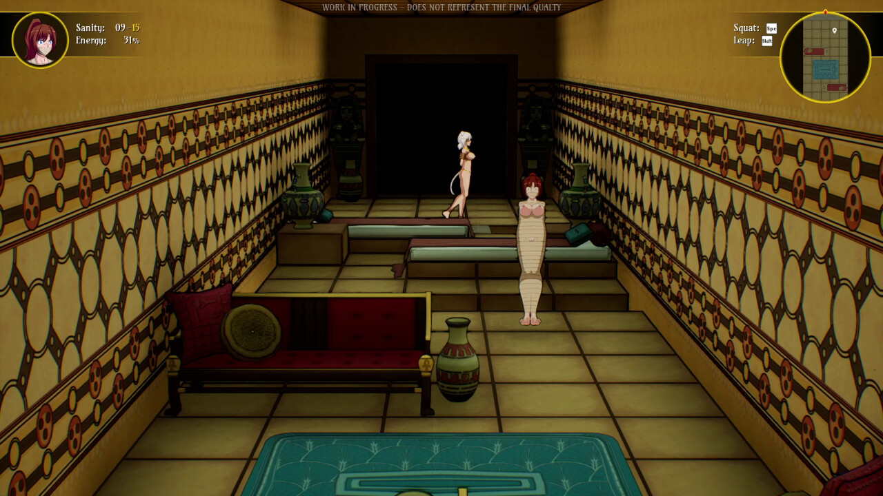 Find and interact with beautiful ladies that came before you and are now enjoying their new immortal lives as the Pharaoh's playthings. Give them some of their sanity back and witness their last punishment before succumbing to the Pharaoh.