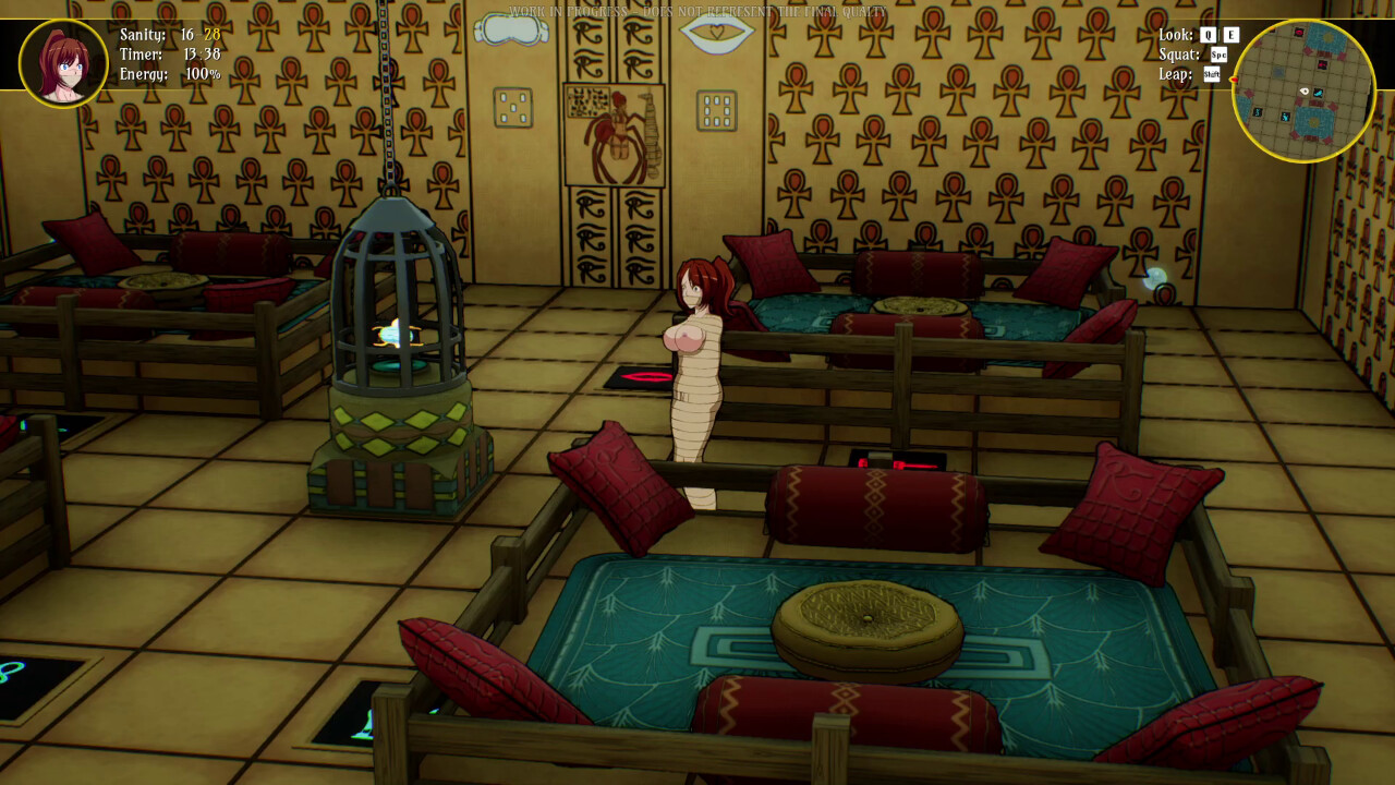 A BDSM-themed stealth/puzzle adventure where you control a treasure hunter named Yui who has been captured and restrained after attempting to rob a long lost Egyptian tomb. Help Yui solve puzzles, avoid the Pharaoh and her lackeys, and try to escape the tomb... All while completely Wrapped Up!