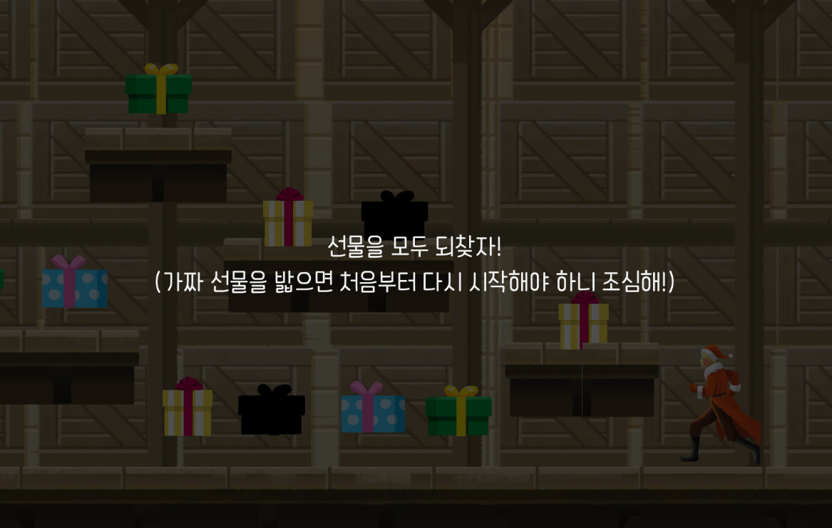The boy who succeeded his grandfather as Santa, he gets all his presents stolen a day before Christmas Help the boy get the gift back. Help people by following the story and they will help you, too. Do me a favor, find the whereabouts of the gift and follow it. Have a conversation with the npc.