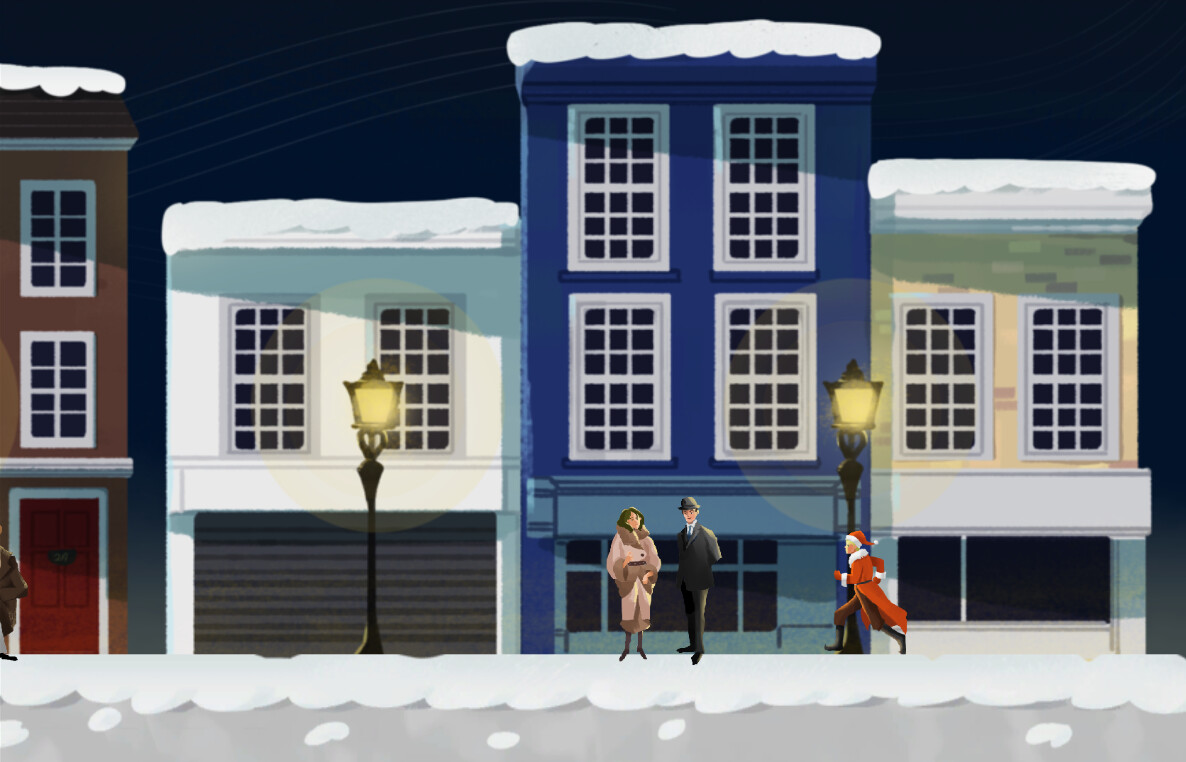 "Santa and the Gift Scandal" follows the main character, the boy who succeeded his grandfather as Santa, and retrieves the stolen gift a day before Christmas. Players need to talk and collaborate with multiple people to help this boy get back the gift.