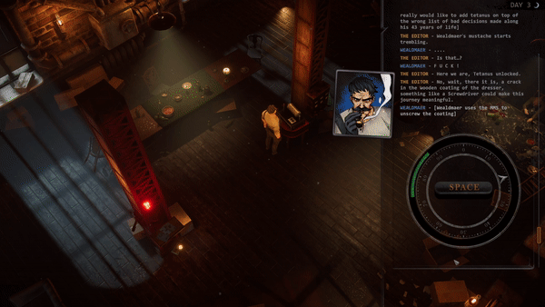 • Master your oratory skills in challenging relationships while exploring the building in which you're locked in. Sacrifice your belongings and craft whatever it takes to be prepared for the Nuclear Winter. An election to win, a political-mistery to unwrap, how far would you go into the guts of Wynstann Quarter's society?