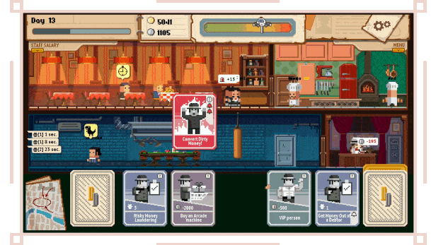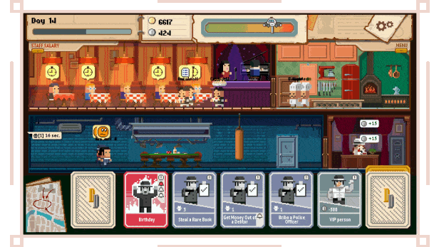 Don Duality is a Chaos Manager game with card mechanics. Send your gangsters to the heist and launder money in your restaurant. Hire staff and upgrade your establishment, but remember that life like a roulette wheel and not everything can be fully controlled in Don's journey.