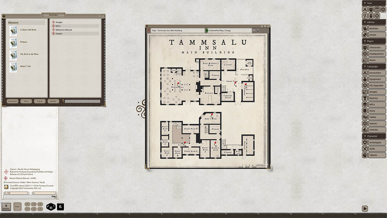 Requires: The free Fantasy Grounds virtual tabletop (VTT) software and a one time purchase of the Vaesen ruleset.