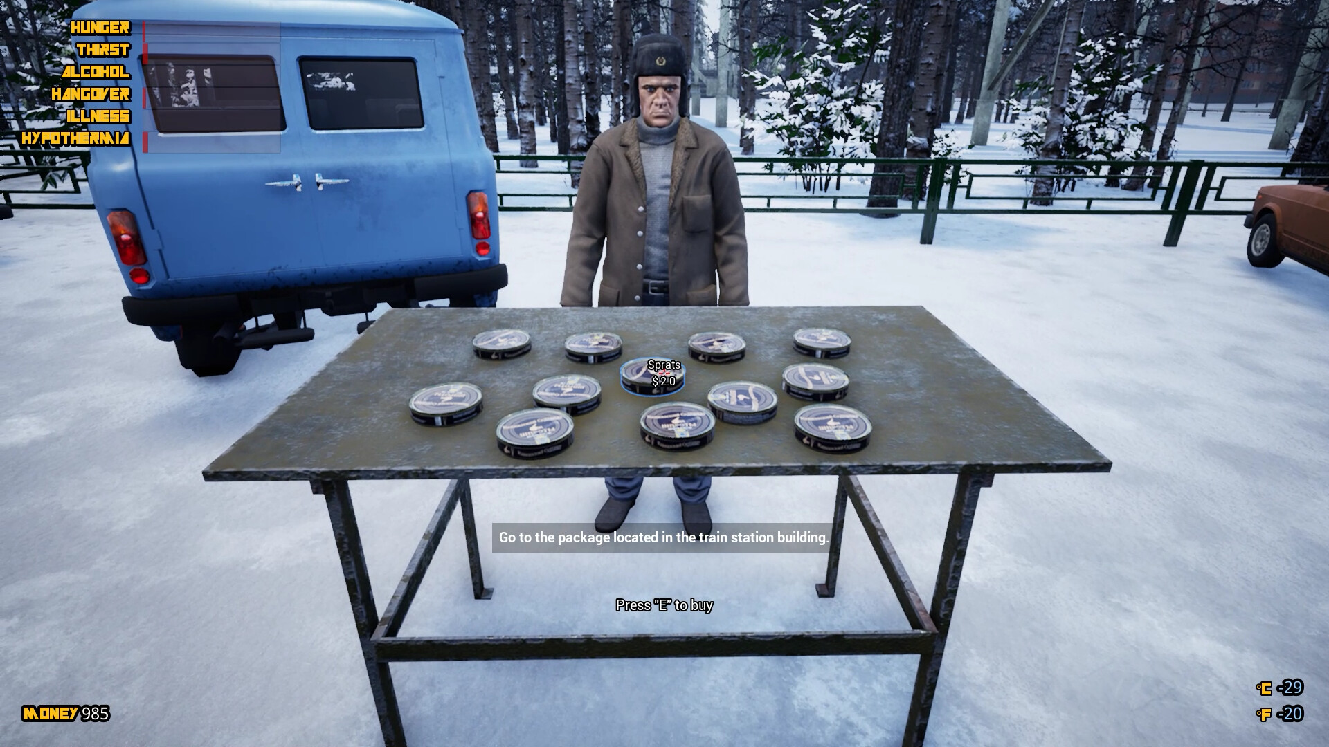 • Purchase and sales system - Buy various items, food, tools, weapons and ammunition.
