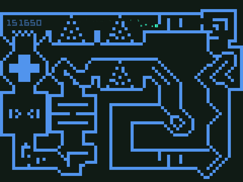 In (almost) 1-bit pixel graphics, you control a player that looks like a small block. You navigate through a maze of blocks. You control your character (who has cute little eyes) in a 2D top-down view. Your direction can change in 45° increments and you must time your movements correctly. Nasty obstacles, moving parts and environments that react to your movement will make it difficult for you to reach your objective without colliding.