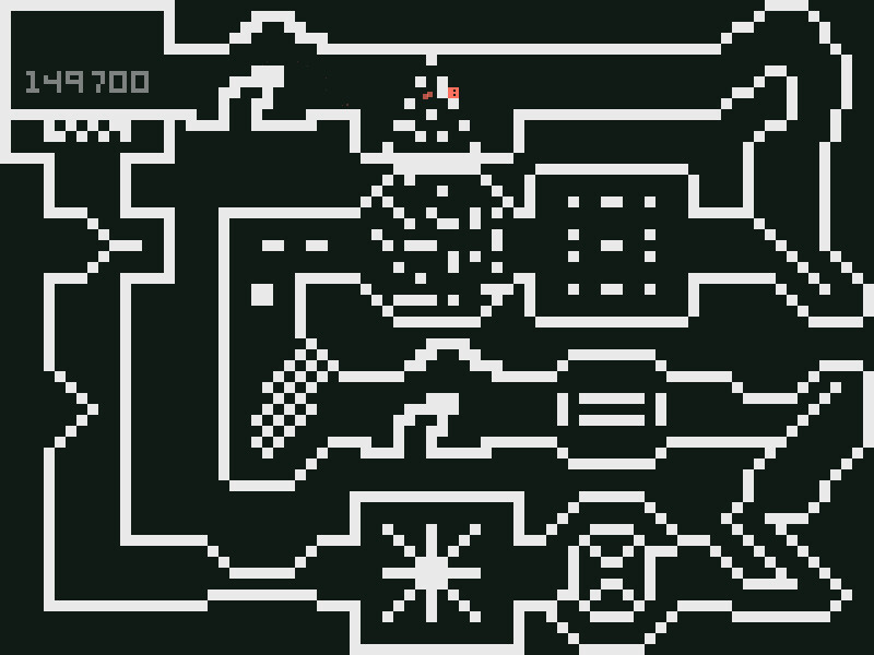 In (almost) 1-bit pixel graphics, you control a player that looks like a small block. You navigate through a maze of blocks. You control your character (who has cute little eyes) in a 2D top-down view. Your direction can change in 45° increments and you must time your movements correctly. Nasty obstacles, moving parts and environments that react to your movement will make it difficult for you to reach your objective without colliding.