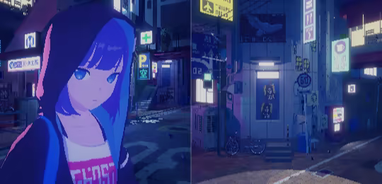 "The city continues to tell her story, even after her disappearance." Tokyo has been altered to be like a maze. A subtle story begins in this abandoned city. A new game experience through 3D & Pixel Art
