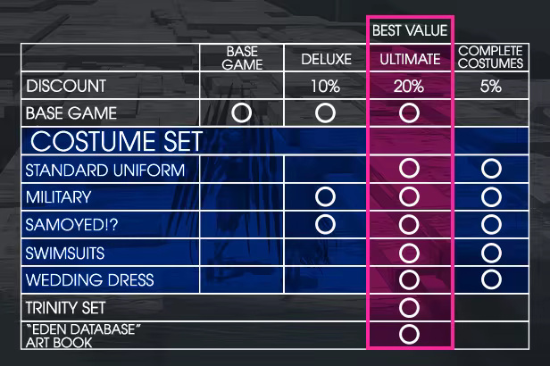 Venture between the battlegrounds of Eden and the safe haven of the Imitation Garden. Within Eden, face exhilarating and cathartic battles against mechanical enemies and discover the unknowns of the dark world.