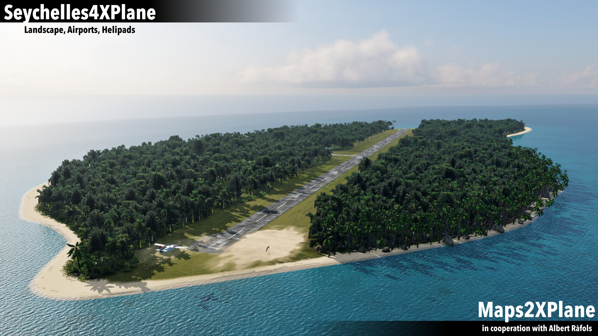 Explore the entire archipelago of the Seychelles with this X-Plane add-on. In addition to the very detailed replica of the Seychelles International Airport and the Praslin Island Airport, numerous smaller airfields are awaiting you – some of those will be a challenge even for experienced pilots. Moreover, there are four heliports available, so that you have every possibility for an exciting tour over the fantastic island landscape.