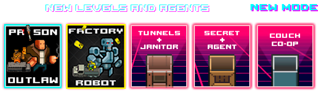 Retrowave Action Roguelike featuring tough agents battling crime to the electrifying music of artists like Droid Bishop, Timecop1983, and more! Choose your agent and dive into hardcore action against enemies and bosses, utilizing a vast arsenal and special abilities that will define your playstyle