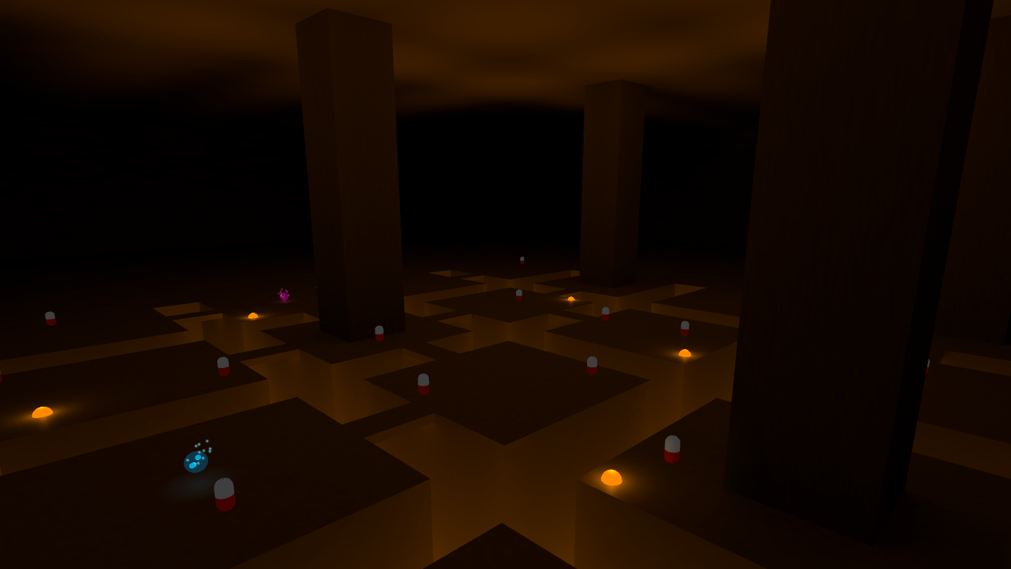 Kill Pill is a simple arena shooter game where you shoot pills that randomly spawn around the map. There are six types of powerups you can get: speed (red), jump (blue), automatic firing (green), collateral damage (purple), shotgun (orange), and freezing time (white). Two modes are in the game. Classic mode only has red pills which run toward you. Arcade mode has 4 types of pills: red ones, orange ones which split in two when you shoot them, blue ones which jump with you, and green ones which are faster than you. Each kill is one point added to your score. High scores are saved between each session. How high can you go?