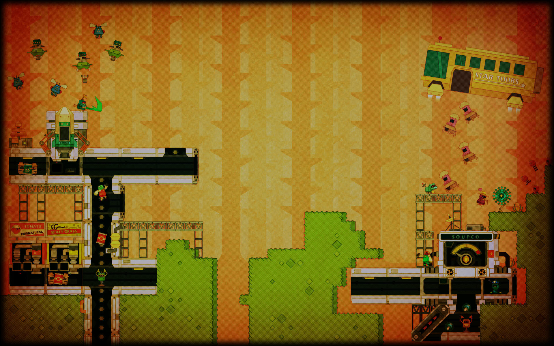 Welcome to SoupCo, Astroworker! Your mission is to explore remote planets in search of ingredients to make the galaxy's tastiest soups and rocket them into the gullets of our hungry customers. To succeed you must battle the elements, alien plants and animals, and dastardly rival soup corporations at every turn! Build your base of operations with the help of high-tech SoupCo robots and make the galaxy's most mouthwatering soups while fending off attacks from competitors and the local wildlife.