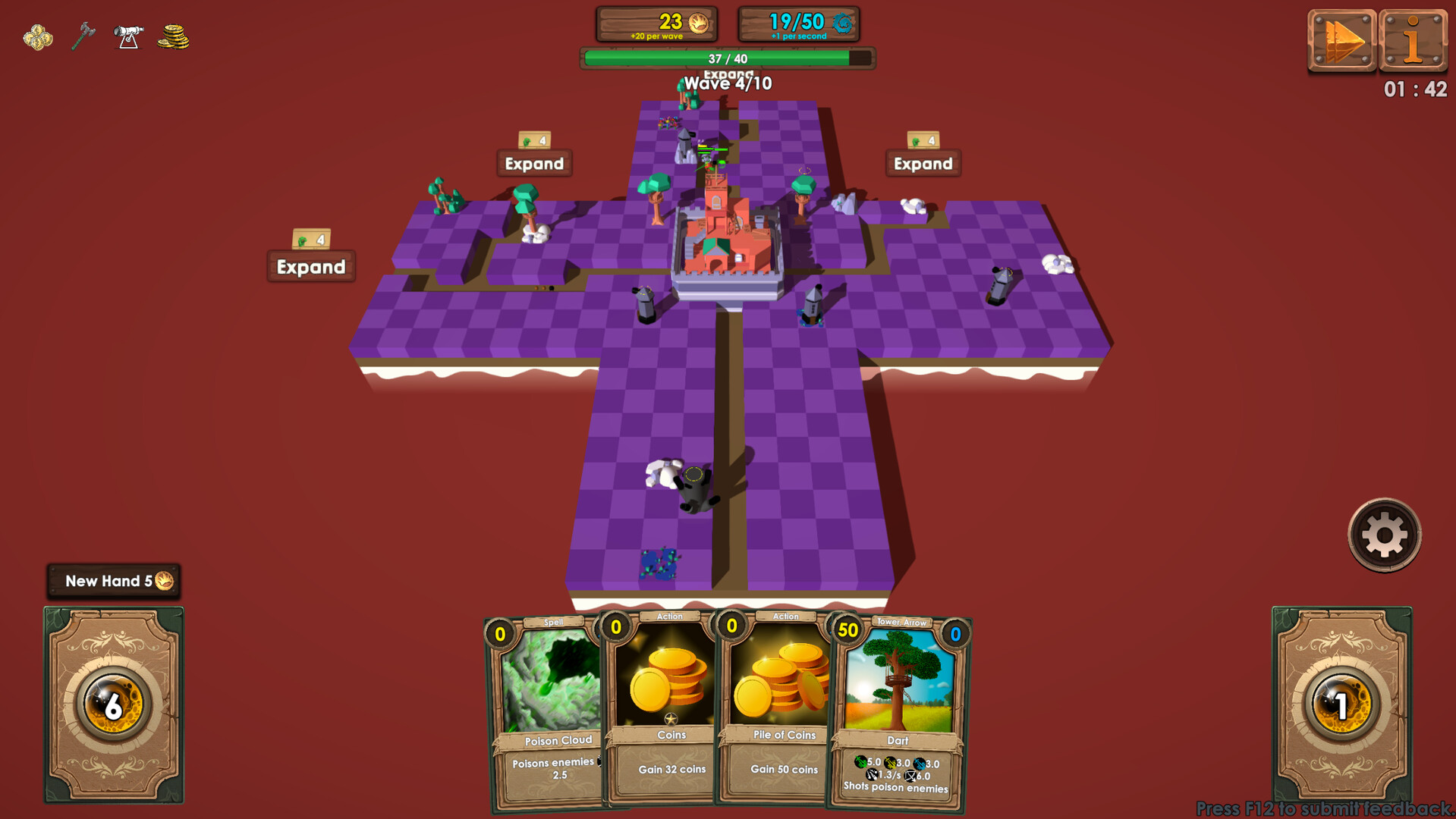 Towers Deck is a roguelike tower defense deck building game. Buying cards, using them to destroy enemy waves, researching new technologies - all leads to one goal - protect the castle at all costs.