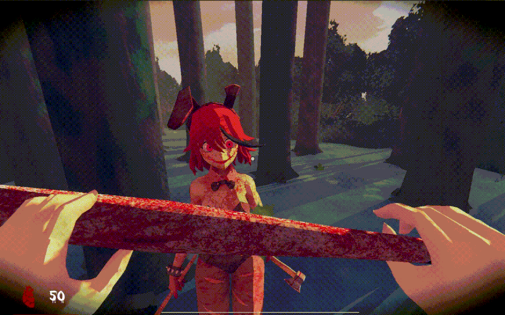 Randomly generated forest map with 3 variations that the player might have a hard time navigating around. AI will use some trees to stalk and hunt the player including climing the tree and using the bushes to hide and stalk.