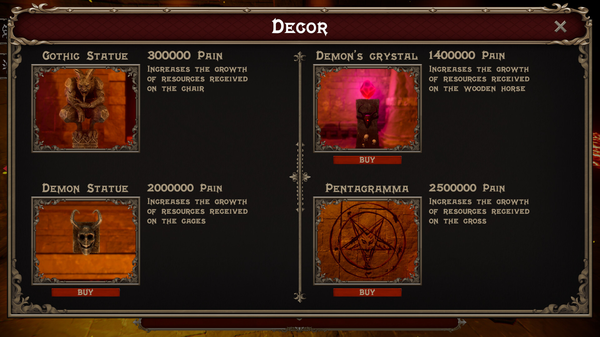 Sex with Succubus❤️‍🔥 is a kind of Lust Demon simulator, where you kind of manage our personal hell. You have a Pain and Suffering counter and when it reaches a certain value you have the opportunity to improve some torture tool to speed up the Pain and Suffering points.