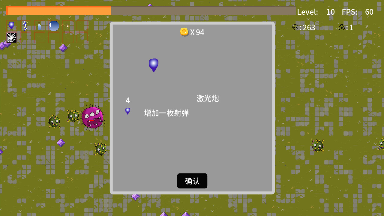 “采用吸血鬼玩法,目前1个角色,10个普通武器,10个超武,15个被动,1个20分钟地图。”