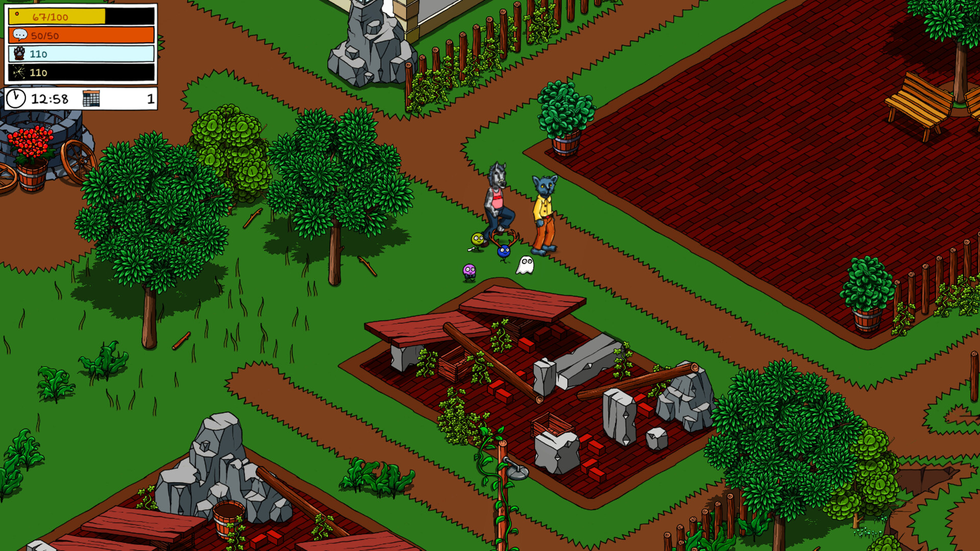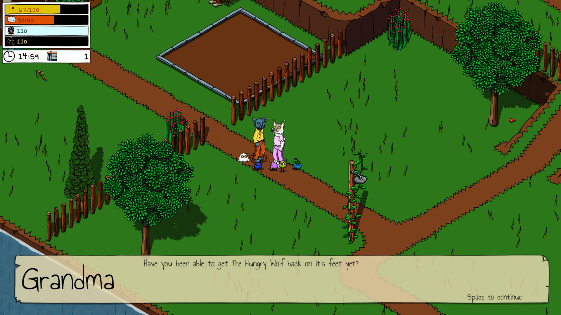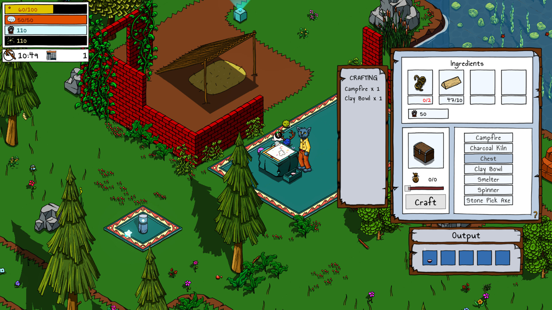 There are minigames when you gather wood or ore, or when you observe the life surrounding you. Research items to gain recipes and agency to be more capable in the world around you, craft more items to help you in your tasks, and at the end of the day, know that you've helped all those you encountered.