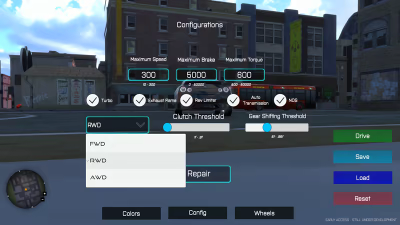 Drift City is an Open World Driving Drifting Sim with Deep Car Customization such as Speed, Suspension, different driving system and styles and much more which you can read down below. There are 8 cars that can be unlocked for the Early Access and we will add at least 20 cars to the game. It has 6 different cameras/views to see the car and play. There are also Slow-motion and Nitro for all cars available. It has a mini-map so you can see where you go and what you will face and amazing music that can be muted if you wish. More in detail down below.