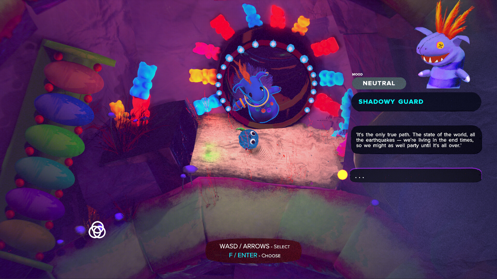 Earthquakes are threatening idyllic Candy Island! Pull yourself together and get to the bottom of what’s troubling the island and its eccentric residents before your whole world breaks apart. UNWOUND is a rollicking yarn: a narrative RPG where people are objects and candy is currency.