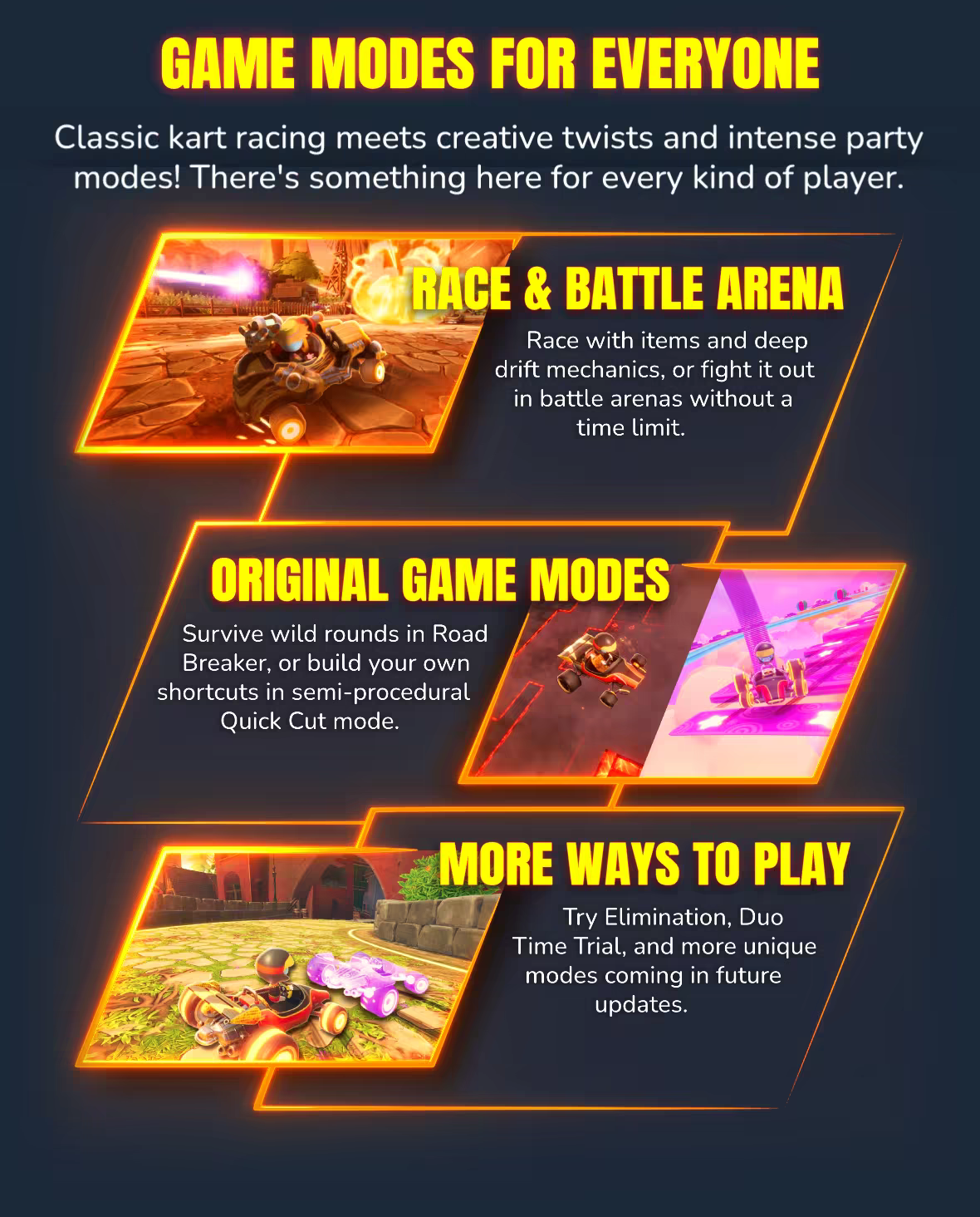 Get ready for the ultimate kart racing experience on Steam & Steam Deck! Inspired by Crash Team Racing, built with its own identity, advanced gameplay systems, tons of new features and massive modding support for endless replayability!