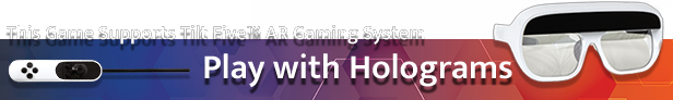 The Tilt Five™ holographic gaming system transforms video games into 3D vibrant holographic environments directly on your tabletop. Using the Tilt Five™ augmented reality (AR) glasses, Gameboard, and Wand controller, you can immerse yourself--and friends--in experiences like never before. Share and enjoy holograms together locally, remotely, or even stream them to your favorite social platforms using MixCast mixed-reality capture software.