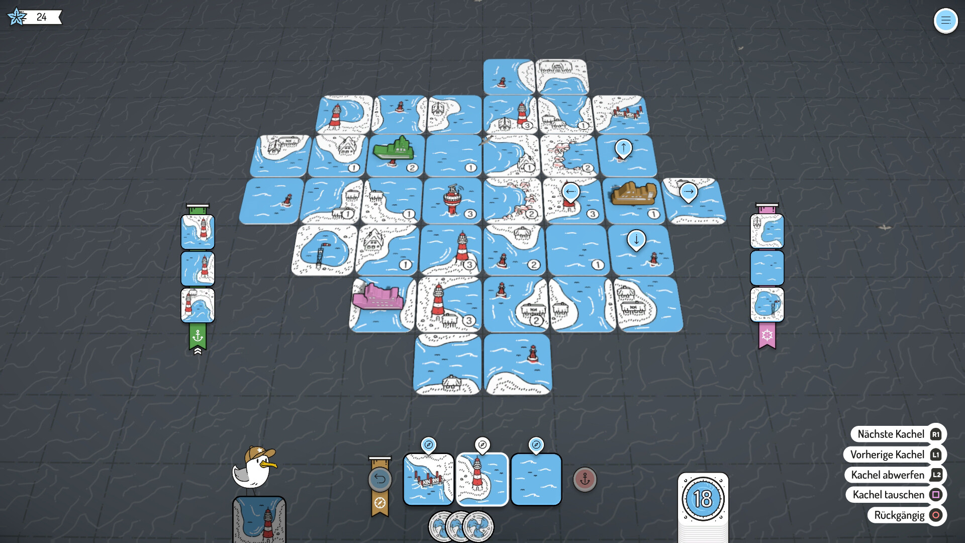 • Freischalten neuer Schiffe, Plättchen, Möwengefährten und mehr